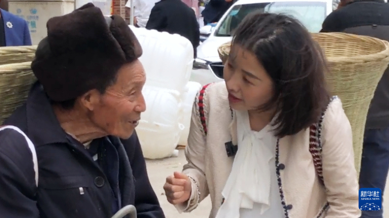 邓小燕与乡亲一起直播乡镇赶集。