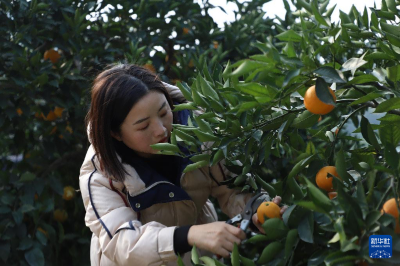 邓小燕查看资中血橙长势。